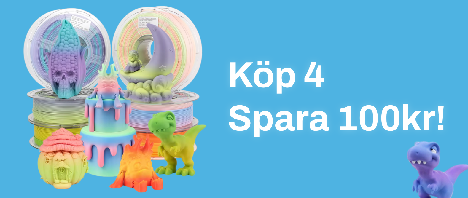Vi erbjuder för tillfället endast PLA+ Gradient. Önskas något av deras andra filament fixar vi fram det! Maila till oss! Minimum köp på 5kg.
